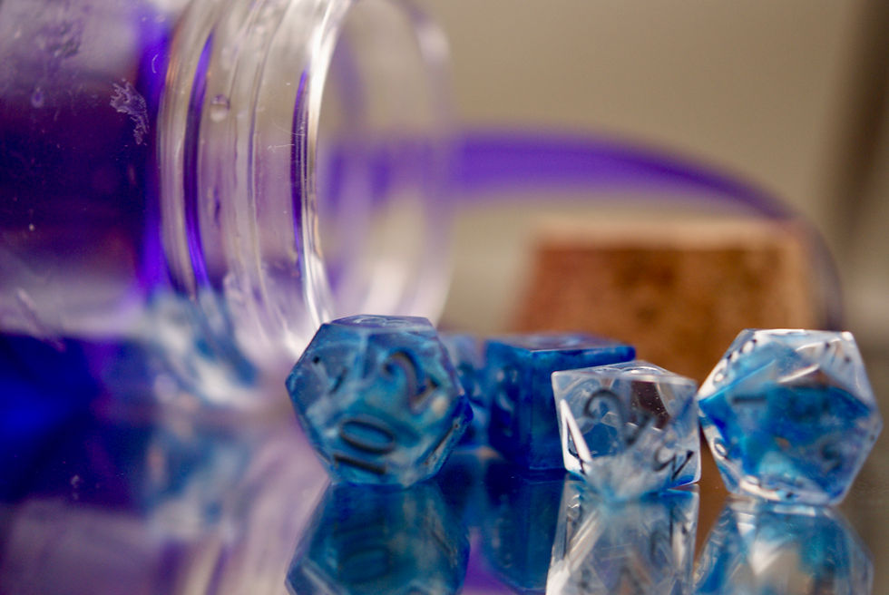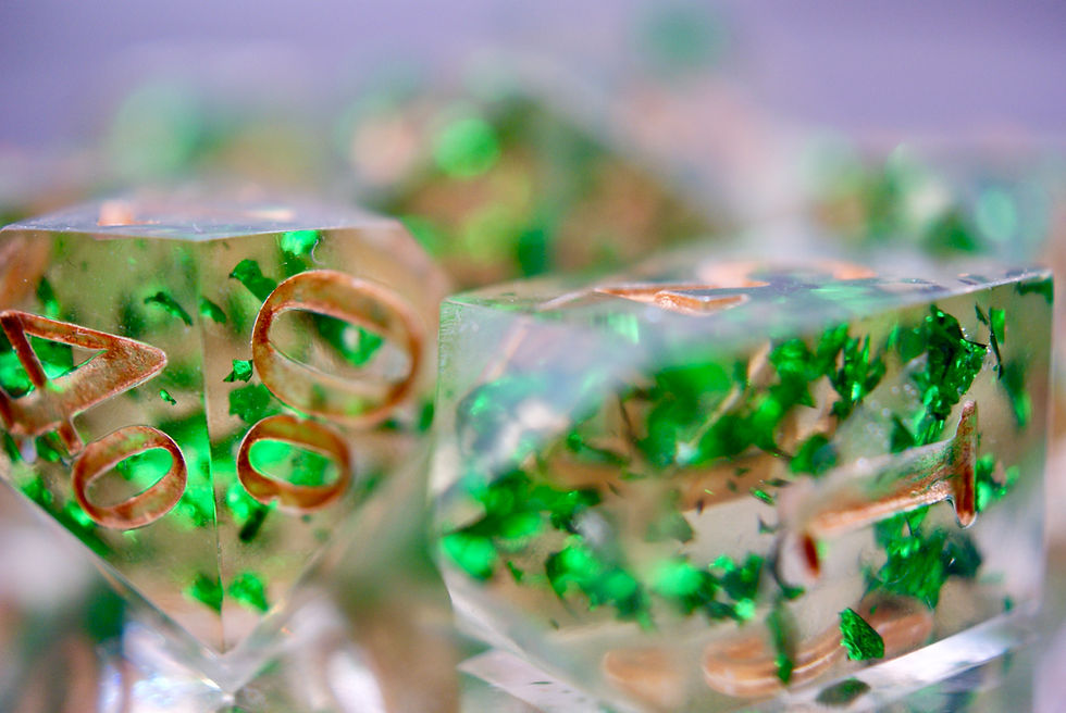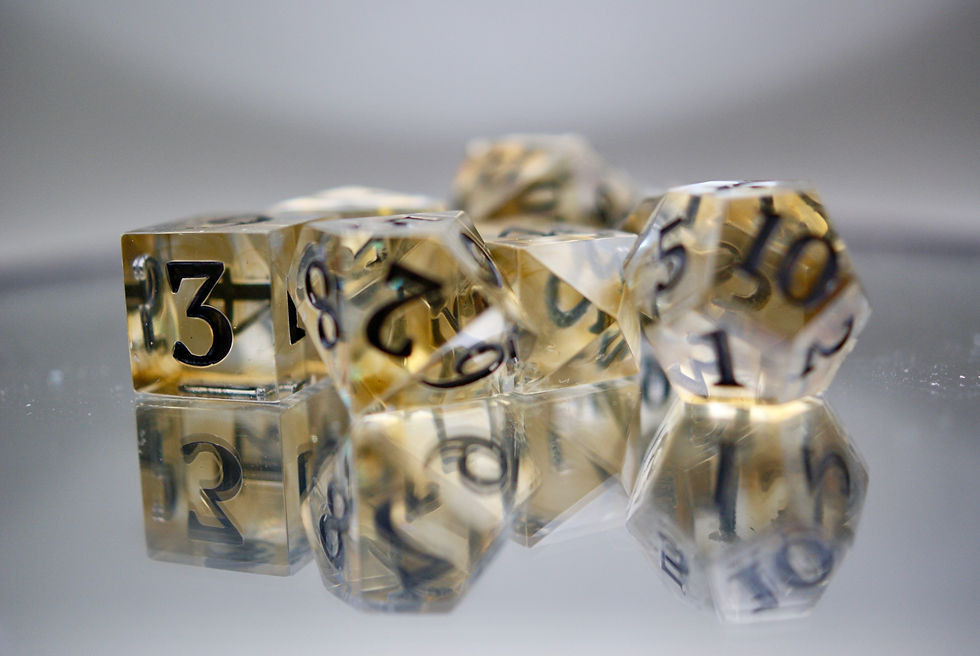 Crafted byme, each piece of this handmade resin set swirls with unique molten layers—no two dice are ever quite the same, and that’s just how we like it.