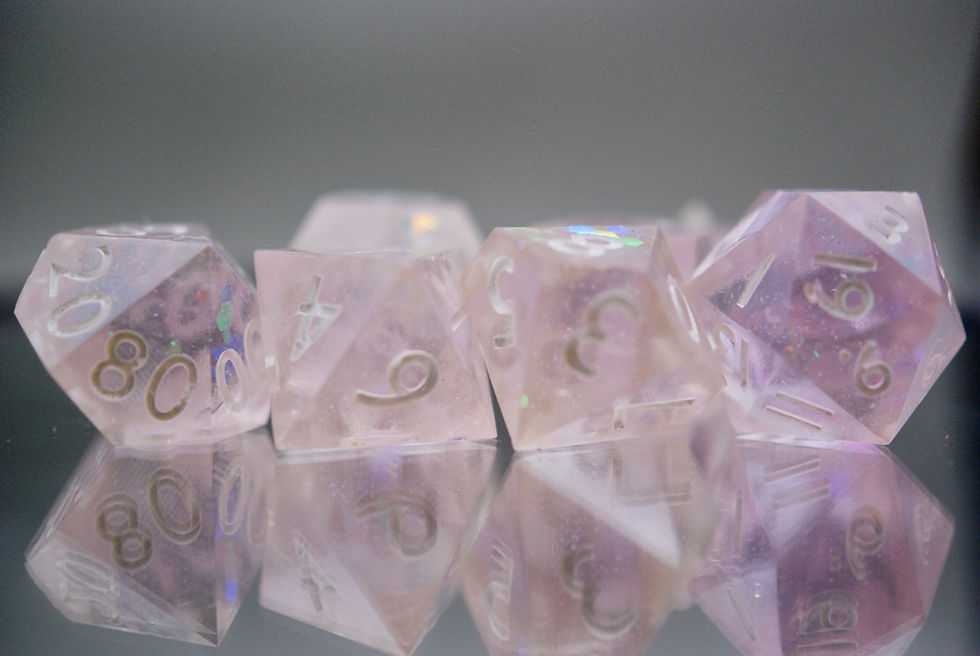 These dice practically dare you to crit fail dramatically and look good doing it. Inked in smoky silver and polished to a soft gleam, they give off serious “final boss energy” with just a hint of “but make it fashion.”