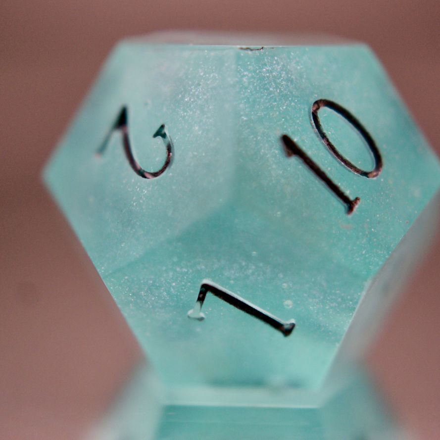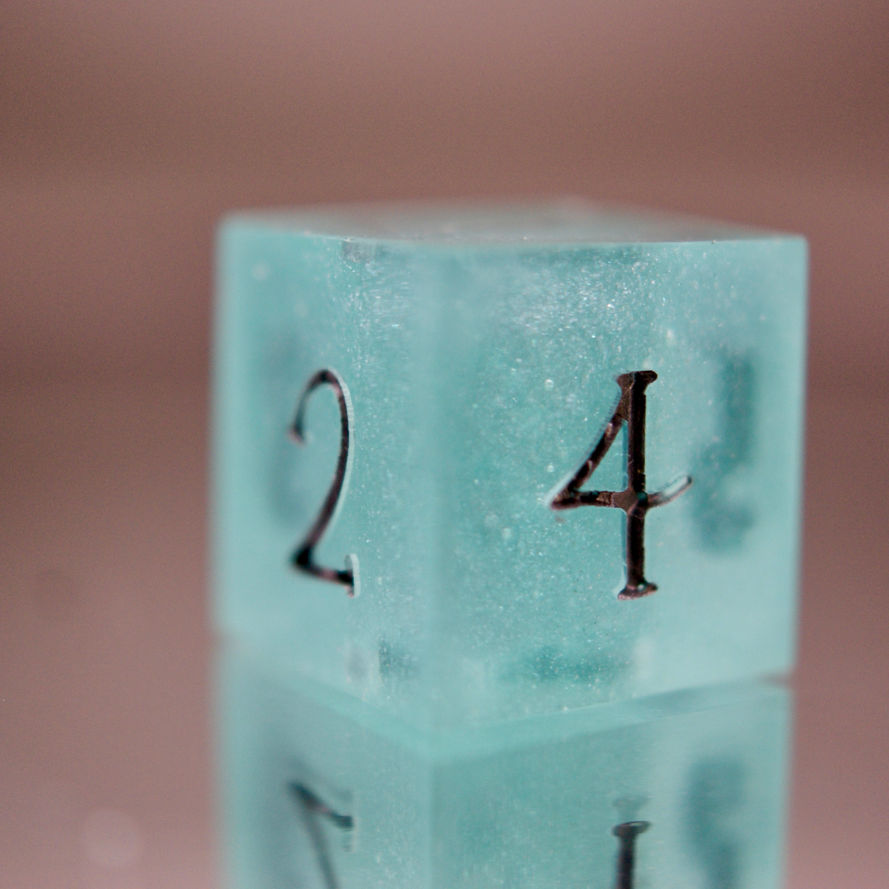 Hand-poured and polished by Undefined Rolls, these dice sparkle like a magical glacier having a disco moment. Whether you're rolling for initiative, casting glitter-based eldritch horrors, or just flexing on your friends with sheer aesthetic power, this set delivers.