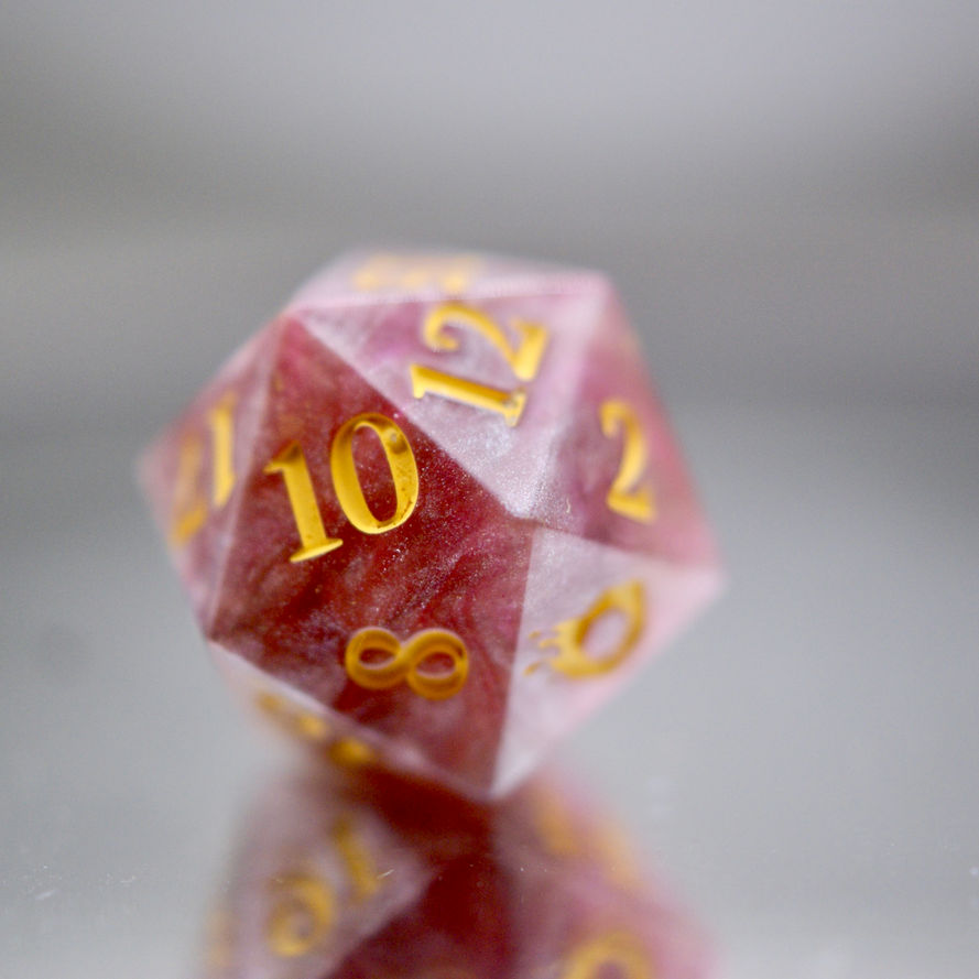 Draw the velvet curtain back, brave investigator, and behold Eldritch Elegance, an 8-piece handmade resin dice set steeped in forbidden beauty and Victorian mystique. Each die is cast in swirls of wine-red, burgundy, and shadowy pearl. Colors reminiscent of candlelit drawing rooms and unearthly whispers heard in gaslit alleys. Elegant golden numbering gleams softly, like half-seen runes in a forgotten tome.