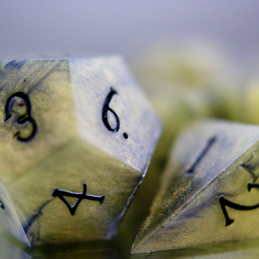Each die is hand-poured and polished by me, ensuring no two are exactly alike—because mass-produced math rocks are for paladins.